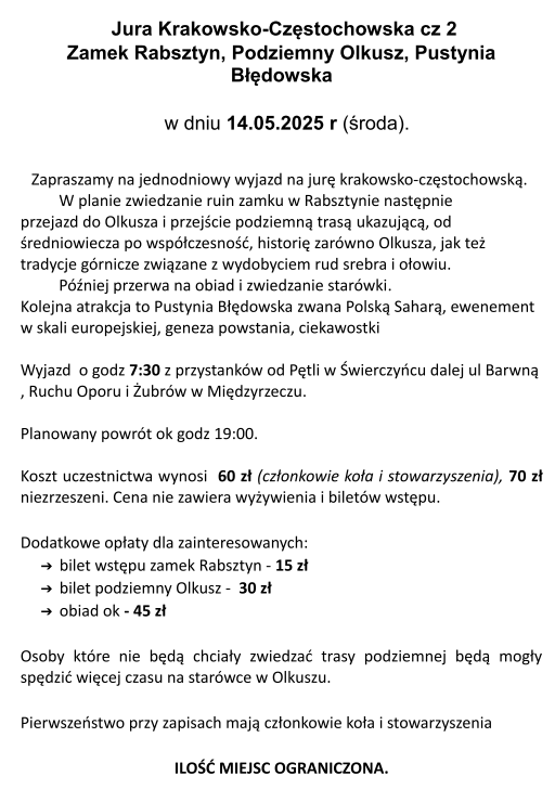 Jura Krakowsko – Częstochowska cz 2 14.05.2025 r. (środa)