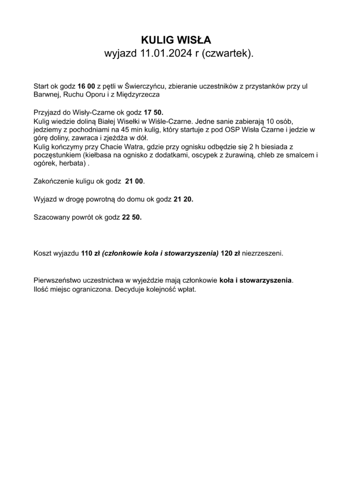 Zapraszamy na kulig wieczorową porą  w Wiśle Czarne, tym razem zobaczymy jak Wisła prezentuje się w nocnej i śnieżnej scenerii.
