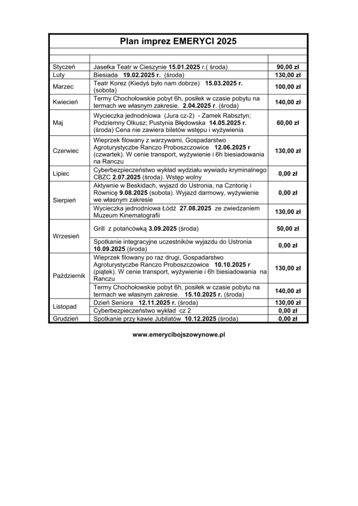 Proszę o zapoznanie się z planem imprez na rok 2025.