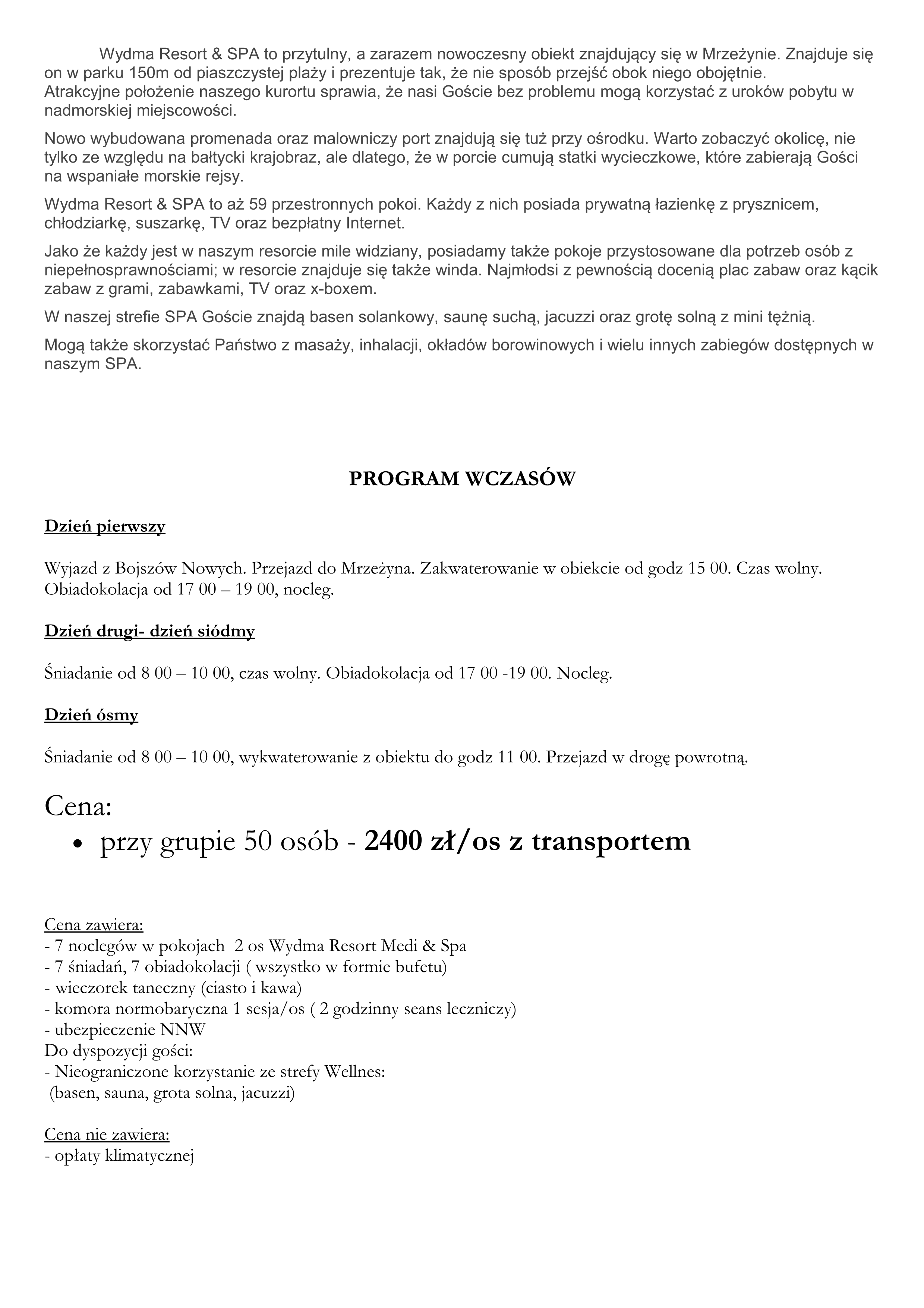 Wczasy 2025 Mrzeżyno 16-23.06.2025